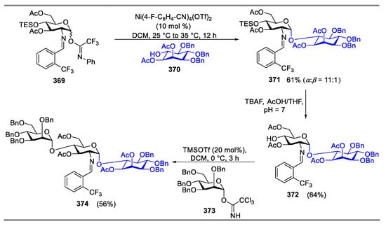 2.4.2. Synthesis of Biologically Active Glycans via Nickel-Catalyzed Glycosylation