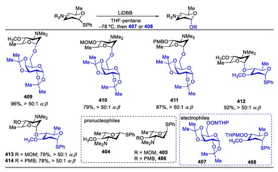 - Hoang, K.M.; Lees, N.R.; Herzon, S.B. Programmable Synthesis of 2-Deoxyglycoside. J. Am. Chem. Soc. 2019, 141, 8098–8103. [Google Scholar] [CrossRef]