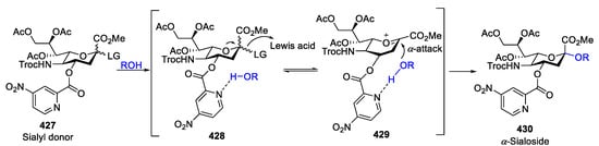 - Vibhute, A.M.; Komura, N.; Tanaka, H.N.; Imamura, A.; Ando, H. Advanced Chemical Methods for Stereoselective Sialylation and Their Applications in Sialoglycan Syntheses. Chem. Rec. 2021, 21, 3194–3223. [Google Scholar] [CrossRef]