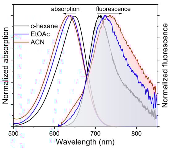 The quest for novel far-red and near-infrared (NIR) fluorophores is an emerging field in dye chemistry [1,2,3]. Nowadays, fluorescent imaging has become a powerful tool to visualize biological systems and track biomolecules under advanced fluorescent microscopes with super resolution (single molecule) [4,5,6]. This technique demands molecular probes working in the so-called biological or therapeutic window (beyond 650 nm), owing to the deep-tissue penetration of this long-wavelength radiation (2–5 cm) [7,8,9,10]. These fluorophores should be chemically robust and photostable in order to display long lasting fluorescent images, and readily available for post-functionalization to allow targetable labelling [11]. Another aspect of these red–NIR luminophores is the development of low-cost excitation sources in optical fibers applied in telecommunications (telecom range beyond 800 nm) owing to the lower interference and scattering of this long-wavelength radiation with its surroundings, allowing the light to travel longer distances [12,13].