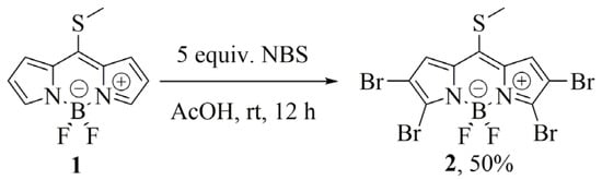 Synthesis of the tetrabrominated 8-methylthioBODIPY precursor 2.