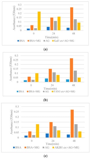 - Rahmanifar, E.; Miroliaei, M. Differential effect of biophenols on attenuation of AGE-induced hemoglobin aggregation. Int. J. Biol. Macromol. 2020, 151, 797–805. [Google Scholar] [CrossRef] [PubMed]