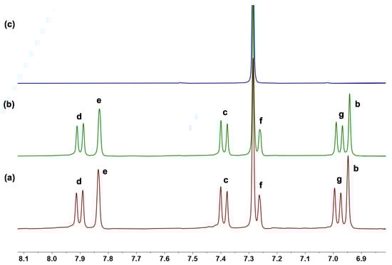 Partial 1H NMR spectra (400 MHz, CDCl3, 298 K) of (a) free RR-1, (b) RR-1 and 1.0 equiv. of TBAI, and (c) free TBAI. [RR-1]0 = 4.0 mM.