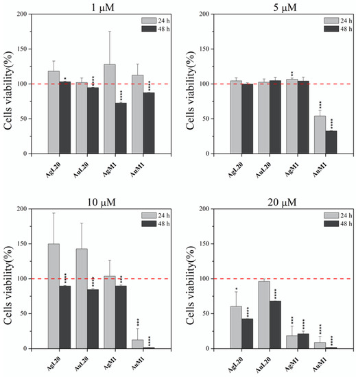 | M-NHC | IC50 24 h (μM) | IC50 48 h (μM) |