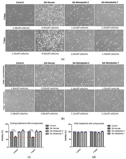 2.5. GA-Hecate and GA-Metabolite Cell Toxicity during Constant Treatment