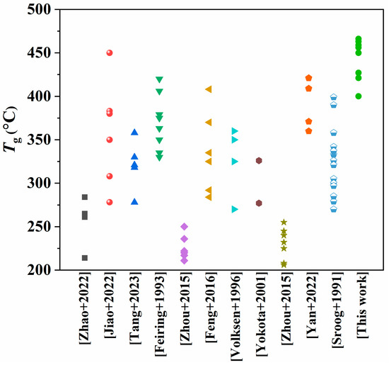 Tg contrast between our work and others published on homo-PIs [25,35,37,38,39,40,41,42,43,44,45].