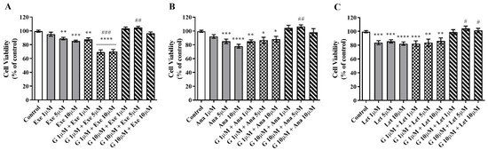 | Exe 10 µM | 85.79 ± 0.29 **** | 2.61 ± 0.23 **** | 11.18 ± 0.42 *** |