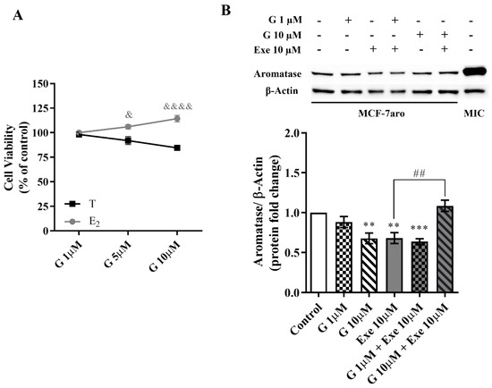 2.3. Genistein Affects Aromatase and Hormone Receptors’ Expressions