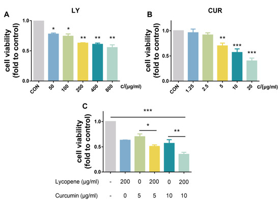 2.1. Effects of LY and CUR on the Viability of BPH-1 Cells In Vitro