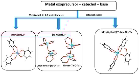 Reported synthetic and structural data for Nb(V) and Ta(V) catecholate complexes can thus be presented in the following scheme (Figure 7).