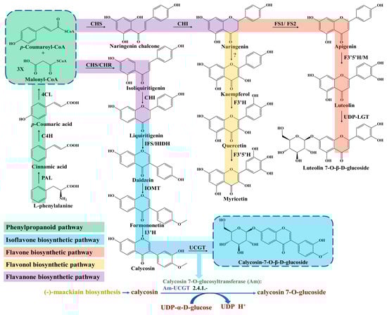 - Chen, Y.; Li, B.; Jia, X.; Sun, S.; Su, Y.; Chen, G. Differential expression of calycosin-7-O-beta-D-glucoside biosynthesis genes and accumulation of related metabolites in different organs of Astragalus membranaceus Bge. var. mongholicus (Bge.) Hsiao under drought stress. Appl. Biochem. Biotechnol. 2022, 194, 3182–3195. [Google Scholar] [CrossRef] [PubMed]