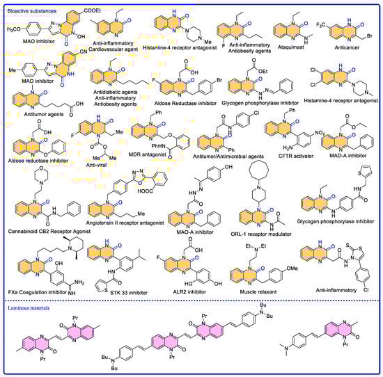 Bioactive substances and luminous materials related to quinoxalin-2(1H)-one compounds.