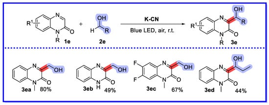 - Ke, Q.; Yan, G.; Yu, J.; Wu, X. Recent advances in the direct functionalization of quinoxalin-2(1H)-ones. Org. Biomol. Chem. 2019, 17, 5863–5881. [Google Scholar] [CrossRef]