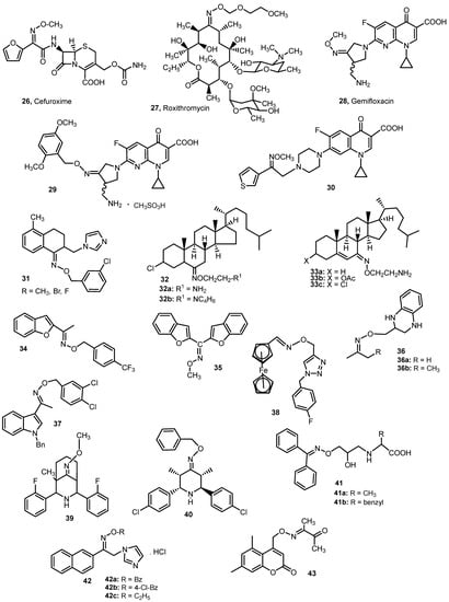 The structures of the oxime ethers 26–43 with the antibacterial activity.