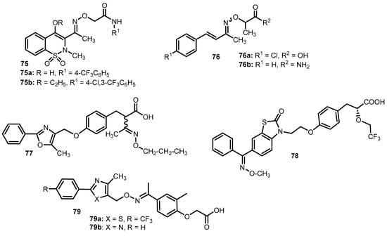 - Makadia, P.; Shah, S.R.; Pingali, H.; Zaware, P.; Patel, D.; Pola, S.; Thube, B.; Priyadarshini, P.; Suthar, D.; Shah, M.; et al. Effect of structurally constrained oxime-ether linker on PPAR subtype selectivity: Discovery of a novel and potent series of PPAR-pan agonists. Bioorganic Med. Chem. 2011, 19, 771–782. [Google Scholar] [CrossRef] [PubMed]