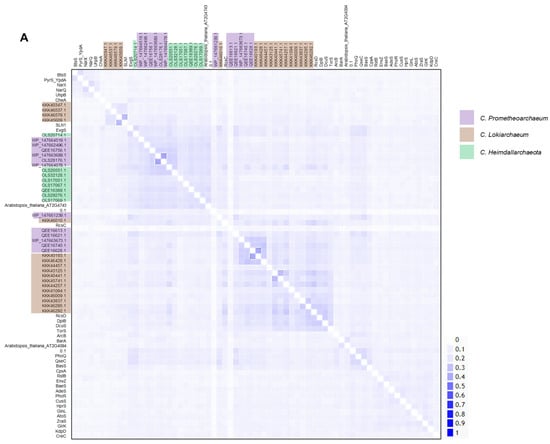 All the kinases were subjected to sequence homology analysis and phylogenetic reconstruction. In Figure 1A, a 2D pairwise map is shown, and two clusters of low homology were identified between subgroups of kinases from each dataset. Most of the Asgardian proteins showed low homology with bacterial, yeast, or plant kinases, suggesting important differences from bacterial kinases. The two kinases seem identical, even though the genome annotation indicated otherwise, but were included in all the analyses conducted.