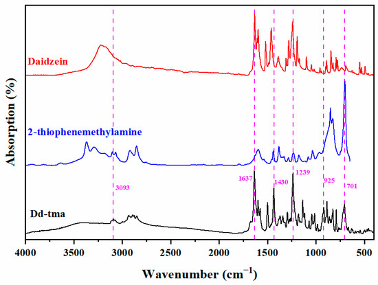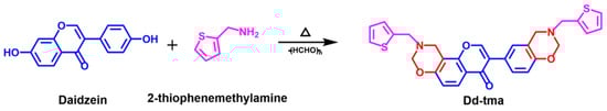 3.3. Synthesis of 9-(theiophen-2-ylmethyl)-3-(3-(thiophen-2-ylmethyl)-3,4-dihydro-2H-benzo[e]-[1,3]oxazin-6-yl)-9,10-dihydro-4H,8H-chromeno[8,7-e][1,3]oxazin-4-one (Abbreviated as Dd-tma)