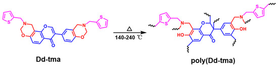 Chicago/Turabian StyleYao, Zhenhao, Yin Lu, Jianan Song, and Kan Zhang. 2023. "Synthesis of Daidzein and Thiophene Containing Benzoxazine Resin and Its Thermoset and Carbon Material" Molecules 28, no. 13: 5077. https://doi.org/10.3390/molecules28135077
