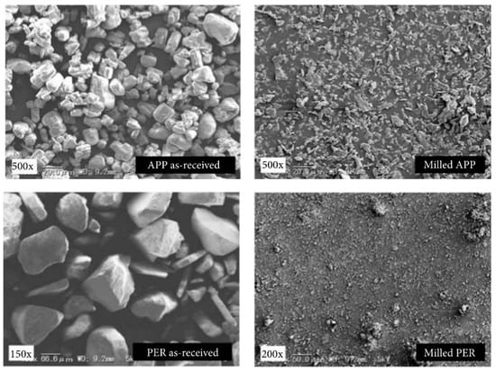 SEM micrographs of APP and PER additives before and after milling. Reproduced from ref. [64] with permission from John Wiley and Sons.