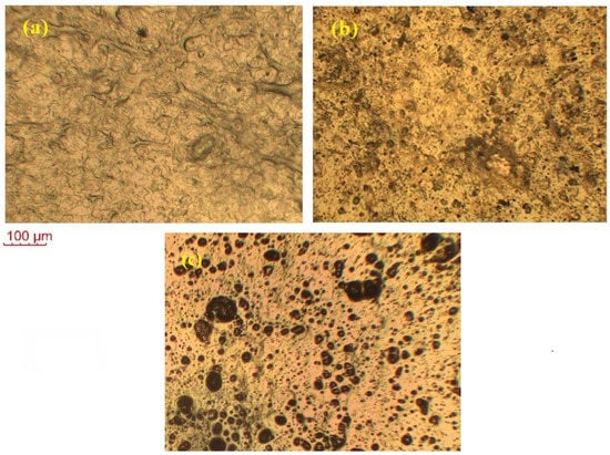 Figure 6 shows the POM images of the pure CNS, KIBPE, and ILBPE films. The image of CNS in the figure depicts some distinguishably brighter patches, in addition to shadowy patches. The brighter patches imply the distribution of crystalline (bright) region and amorphous (shadowy) regions, as cited in the literature. Close comparative study of CNS, KIBPEs, and ILBPEs (Figure 6a–c) showed that adding IL/salt increased the distribution of the amorphous shadowy region as compared with the crystalline bright region, which is well supported by our conductivity and XRD data.