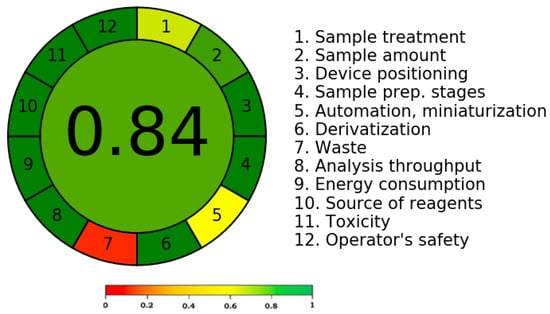 - Pena-Pereira, F.; Wojnowski, W.; Tobiszewski, M. AGREE-Analytical GREEnness metric approach and software. Anal. Chem. 2020, 92, 10076–10082. [Google Scholar] [CrossRef]