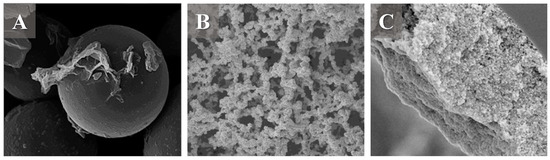 (A) Example of the SiGO-C18ec sorbent used as a sorbent for a packed column. Reproduced with permission from J. Chromatogr. A, 1685, Borsatto, J.V.B.; Maciel, E.V.S.; Lanças, F.M., Investigation of the Applicability of Silica-Graphene Hybrid Materials as Stationary Phases for Capillary Liquid Chromatography., Starting page 463618, Copyright (2022), Elsevier [71]. (B). Example of the poly (GO-co-TAIC-co-MMA) sorbent used as a sorbent for a monolithic column. Reproduced with permission from J. Chromatogr. B, Anal. Technol. Biomed. Life Sci. 1203, Guo, Y.; Si, H.; Li, H.; Zhao, X.; Zhao, Y.; Li, S.; Wang, Q.; Zhu, B., Graphene Oxide-Based a Network Porous Poly (Trially Isocyanurate-Co-Methacrylate) Monolithic Column for HPLC Separation of Aromatic Molecular and Lipopeptide Antibiotics., Starting page 123310, Copyright (2022), Elsevier [38]. (C). Example of the poly (MGONPs) sorbent used as a sorbent for an open tubular column. Reproduced with permission from J. Chromatogr. A, 1667, Şeker, S.; Alharthi, S.; Aydoğan, C., Open Tubular Nano-Liquid Chromatography with a New Polylysine Grafted on Graphene Oxide Stationary Phase for the Separation and Determination of Casein Protein Variants in Milk., Starting page 462885, Copyright (2022), Elsevier [35].