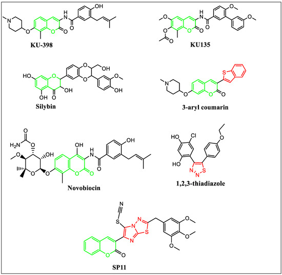 - Marcu, M.G.; Schulte, T.W.; Neckers, L. Novobiocin and Related Coumarins and Depletion of Heat Shock Protein 90-Dependent Signaling Proteins. J. Natl. Cancer Inst. 2000, 92, 242–248. [Google Scholar] [CrossRef] [PubMed]