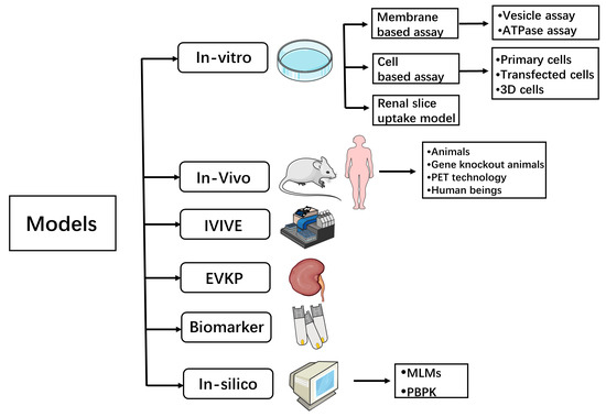 Renal transporter-mediated DDIs can be assessed in vitro, in vivo, in vitro-in vivo extrapolation (IVIVE), and ex vivo kidney perfusion (EVKP) models, etc. Recently, new research methods, such as biomarkers and in silico models, have also become suitable for predicting renal transporter-mediated DDIs. A study may need the combined use of multiple methods to investigate renal transporter-mediated DDIs. Therefore, it is important to know which model should be applied properly at different research stages and how the model can be most accurately and efficiently utilized. This article reviews the basic and the latest research methods for DDIs mediated by renal transporters, and further discusses the advantages and disadvantages of these methods so as to facilitate the research of scholars at different learning stages [9].