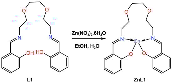 Molecular structure of ligand L1 and its corresponding Zn (II) complex, ZnL1, reported by Kang et al. (2018) [43].