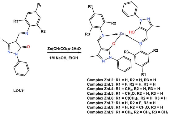 Molecular structure of ligands L2–L9 and their corresponding Zn (II) complexes ZnL2–ZnL9 reported by Gusev (2018) [50].