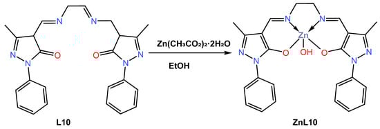 Molecular structure of ligand L10 and its corresponding ZnL10 complex reported by Gusev (2019) [44].