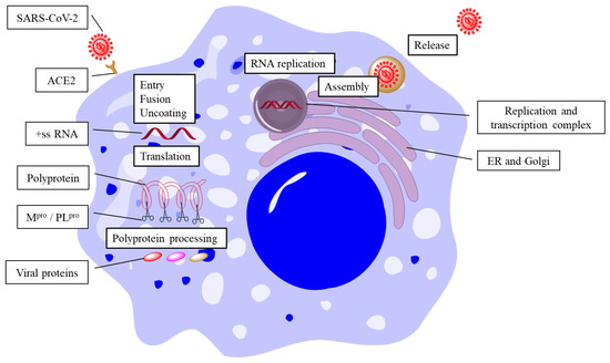 - V’Kovski, P.; Kratzel, A.; Steiner, S.; Stalder, H.; Thiel, V. Coronavirus biology and replication: Implications for SARS-CoV-2. Nat. Rev. Microbiol. 2021, 19, 155–170. [Google Scholar] [CrossRef]