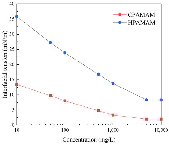 Interfacial tensions of HPAMAM and CPAMAM solutions of different concentrations.
