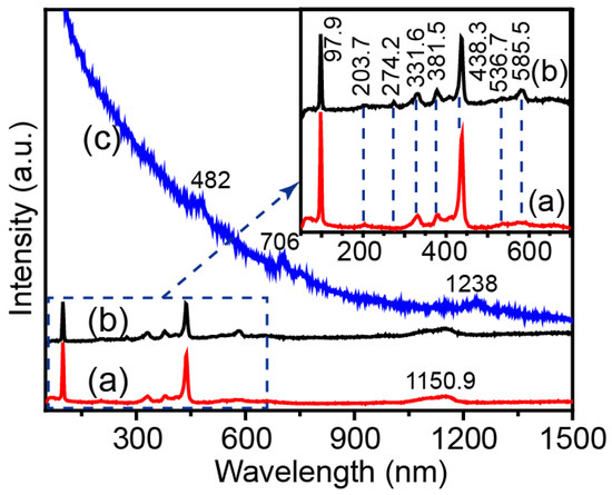 Raman spectroscopy was used to study the molecular vibration and chemical structure, which revealed the defects in ZnO. Compared to MW (Figure 6), no peaks of g-C3N4 were observed for ZnO-X. Several peaks for ZnO were observed (Figure 4a,b). The peaks at 97.9 cm−1 and 438.3 cm−1 were attributed to the E2 vibration mode of ZnO with a hexagonal structure [16]. The peaks at 203.7 cm−1, 331.6 cm−1, 381.5 cm−1 and 1150.9 cm−1 were assigned to the molecular vibration arising from zero-boundary phonons 2-TA(M), 2E2, A1 (TO) and 2E1(LO) modes, respectively [22]. The peak around 585.5 cm−1 was assigned to the E1(LO) mode, owing to the contribution of oxygen vacancies in ZnO. Compared to ZW, ZnO-X showed relatively higher intensity of the peak located at 585.5 cm−1, which revealed that ZnO-X has more defects than ZW.