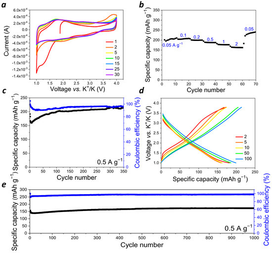 Galvanostatic cycling of the cells was performed within a 1.0–3.8 V (vs. K