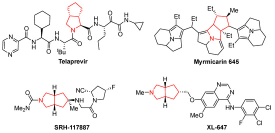 Representative bioactive molecules containing fused pyrrolidine and cyclopentane moieties.