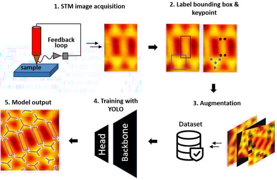 - Zhu, Z.; Lu, J.; Zheng, F.; Chen, C.; Lv, Y.; Jiang, H.; Yan, Y.; Narita, A.; Müllen, K.; Wang, X.; et al. A Deep-Learning Framework for the Automated Recognition of Molecules in Scanning-Probe-Microscopy Images. Angew. Chem. Int. Ed. 2022, 61, e202213503. [Google Scholar] [CrossRef]
