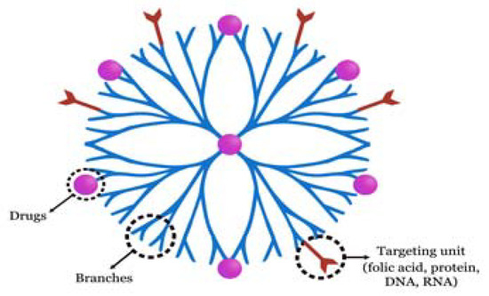 A central core, repeated branches, and terminal functional groups are the three main parts of the 3D, multibranched, and tree-like dendrimers (Figure 2) [118]. Dendrimers are typically synthesised primarily using the divergent approach and the convergent method. Dendrimers have up till now been extensively used in a variety of fields, including electrochemistry, medication delivery, and gene transfection.