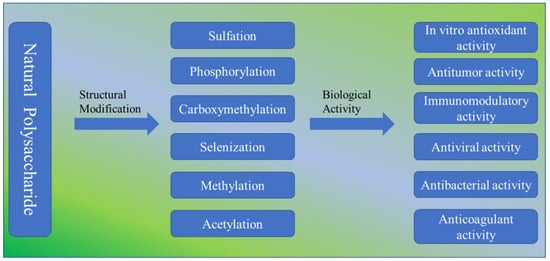 The structural modification of polysaccharides can not only enhance the biological activity of polysaccharides but also add new activities.