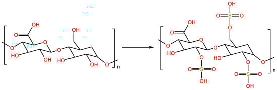 - Fan, L.; Jiang, L.; Xu, Y.; Zhou, Y.; Shen, Y.; Xie, W.; Long, Z.; Zhou, J. Synthesis and anticoagulant activity of sodium alginate sulfates. Carbohydr. Polym. 2010, 83, 1797–1803. [Google Scholar] [CrossRef]