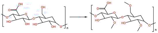The low solubility of polysaccharides in DMSO limits the process of methylation. Polysaccharide dissolution in dimethyl sulfoxide can be supported by ultrasound and microwave radiation [45]. In addition, the heating of polysaccharides in DMSO can increase their swelling and improve their degree of methylation. Polysaccharides’ incorporation in glycerol can also increase the solubility of methylated polysaccharides [46]. In the structural analysis of polysaccharides, the methylation of polysaccharides provides a possibility for the analysis of the connection mode of sugar chains (Figure 6) [47].