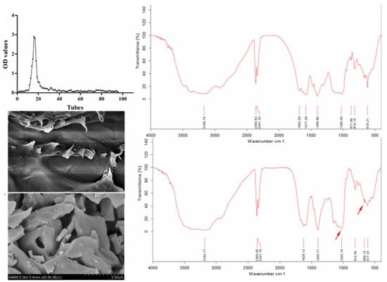 Ultraviolet spectroscopy accurately determines the molecular structures of organic compounds. A UV spectrophotometer is used to detect the polysaccharide solution in the range of 200–800 nm, and UV absorption at 260 nm and 280 nm is monitored to determine the contents of protein and nucleic acid [58].