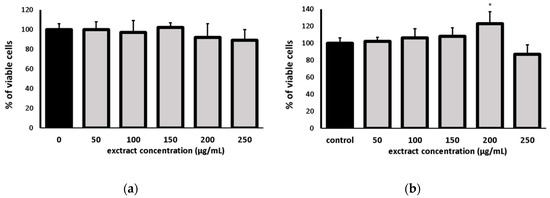 All experiments were performed in triplicates for each extract concentration and presented as a percentage of the control (100%).