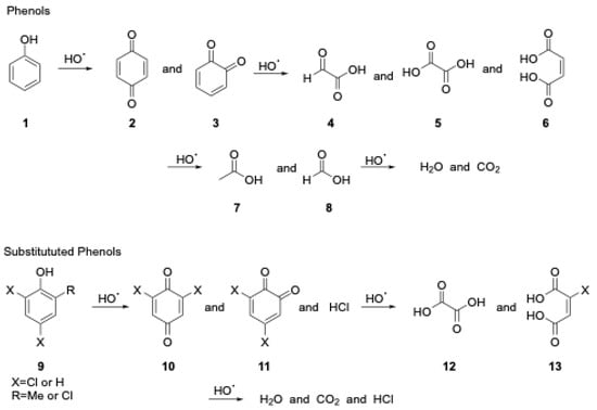 Generic mechanism for decomposition of phenols utilizing hydroxyl radicals.