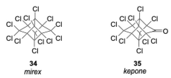 - Beattie, J.K.; Fleming, D.S. Destructive Oxidation of Mirex. Aust. J. Chem. 1998, 51, 973–976. [Google Scholar] [CrossRef]