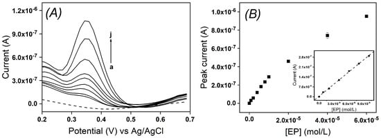 2.3.1. Electrochemical Behavior of EP by Cyclic Voltammetry