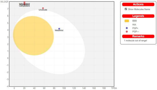 BOILED-Egg plot of selected high-binding ligands as predicted using SwissADME.