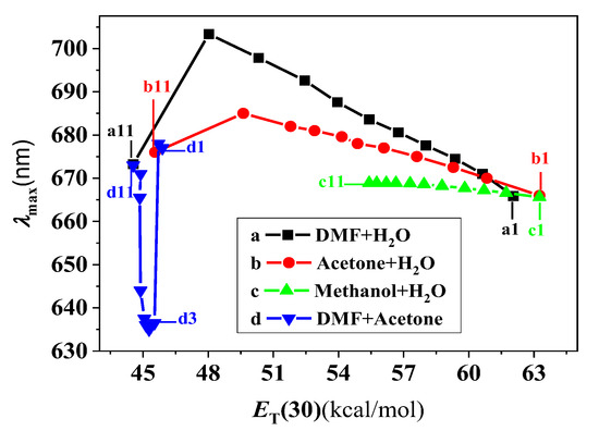 - Cerón-Carrasco, J.P.; Jacquemin, D.; Laurence, C.; Planchat, A.; Reichardt, C.; Sraïdi, K. Solvent polarity scales: Determination of new ET(30) values for 84 organic solvents. J. Phys. Org. Chem. 2014, 27, 512–518. [Google Scholar] [CrossRef]