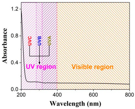 The commonly used scheme is to add UV absorbents to polymer substrates, including inorganic types, such as TiO2, SiO2, ZnO, CdS, etc. [1,2,3,4,5,6,7]. The special energy band structure endows them with an excellent UV absorption capacity and a high transmittance. However, owing to their catalytic capabilities, polymer substrates will degrade faster when exposed to light, decreasing the useful life of the composite materials [8,9,10,11]. Without degrading polymer substrates, 2D nanomaterials such as boron nitride and graphene oxide (GO) were reported as UV absorbents. However, easy agglomeration, poor compatibility, complex preparation process and high cost limited their UV-shielding applications [12,13,14,15,16,17,18,19,20,21]. Also, POSS can improve the UV-shielding properties of polymers through light scattering, but it also reduces their visible light transmittance [22,23,24,25]. Additionally, natural materials like melanin, esculetin, lignin, etc., can also be a useful option for UV absorption, especially for melanin, but their future utilization was found to be hindered by the difficult purifying procedure and volume production [26,27,28]. In our prior works [29], amino-modified melanin (ASE) and polydopamine (PDA) were prepared as fillers in nanocomposites to improve UV-shielding characteristics. However, the difficult mass production of ASE and the insufficient absorption of high-energy UVC by ASE and PDA limited their further use as UV absorbers.