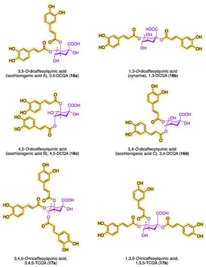 - Mijangos-Ramos, I.F.; Zapata-Estrella, H.E.; Ruiz-Vargas, J.A.; Escalante-Erosa, F.; Gómez-Ojeda, N.; García-Sosa, K.; Cechinel-Filho, V.; Meira-Quintão, N.L.; Peña-Rodríguez, L.M. Bioactive dicaffeoylquinic acid derivatives from the root extract of Calea urticifolia. Rev. Bras. Farmacogn. 2018, 28, 339–343. [Google Scholar] [CrossRef]